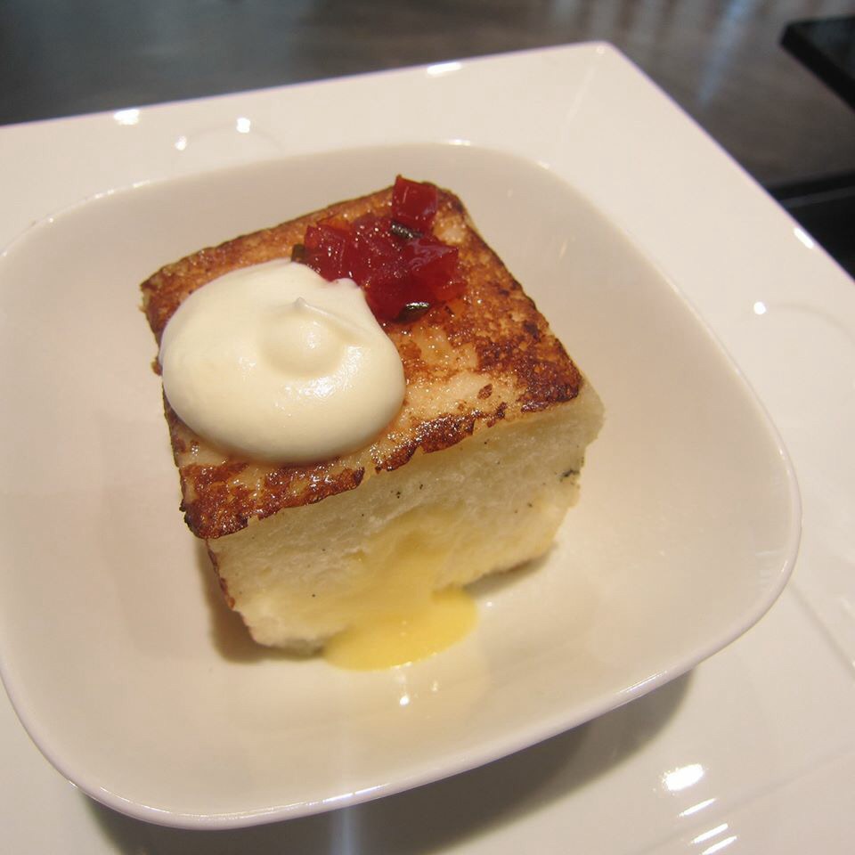 Nobu French Toast with Yuzu Custard, Yuzu Whipped Cream, and Tomato Jam