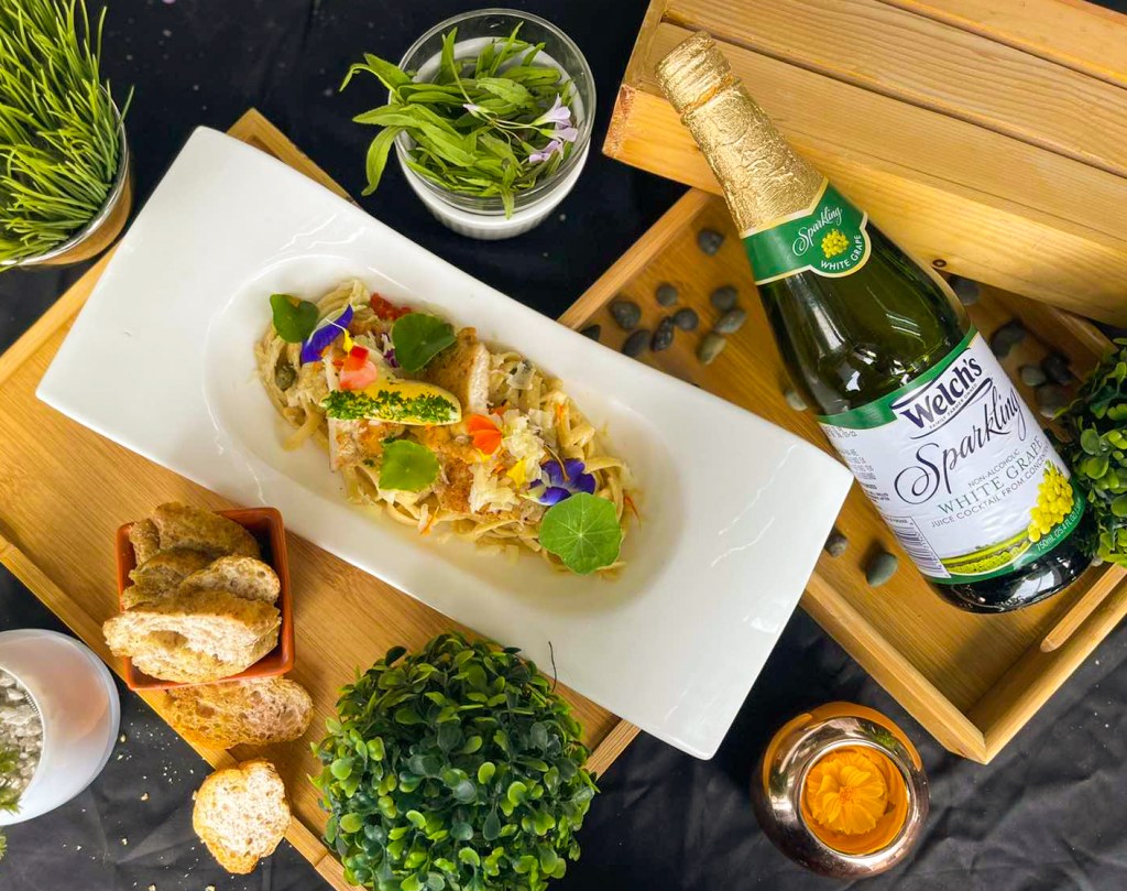 Chicken Picatta Cream Fettuccini is the perfect pair for your Welch’s White Grape Juice. The light bubbly sensation of the sparkling juice balances out the creaminess of the pasta and is the ultimate refresher in between bites.
