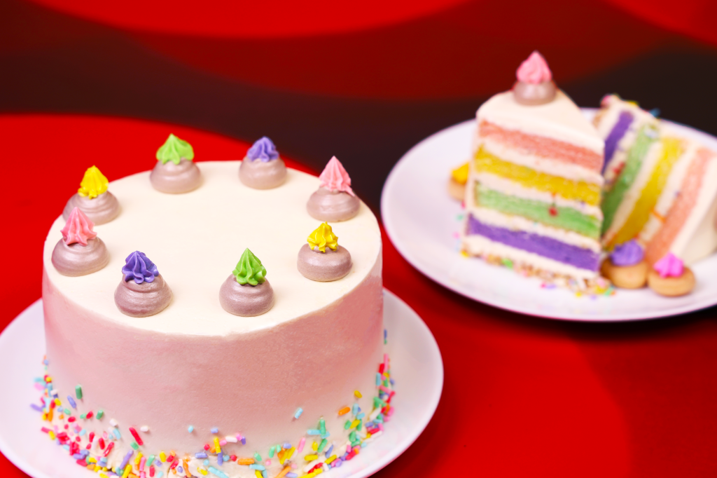 The Rainbow Gem Cake is composed of a gem cookie crust, stacked with vibrantly colorful layers of vanilla chiffon filled and frosted with rich buttercream icing. It’s decorated with pastel-colored sprinkles on the outside and gem icing on top that will delight both kids and kids-at-heart. It’s also best enjoyed as dessert after a meal with Max’s favorites such as Sarap-to-the-Bones® Fried Chicken, Sizzling Tofu, Lechon Kawali Kare-Kare, and Lumpiang Shanghai, among others.
